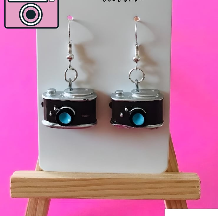 Quirky earrings for pierced ears with a silver plated hook and rubber stopper, a great gift for photography lovers!