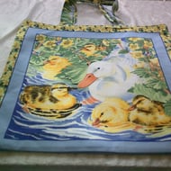 The design on this apron is of Lucy Mabel Attwell Characters on a pale blue background.