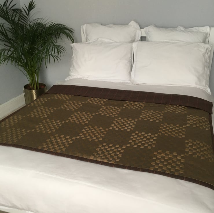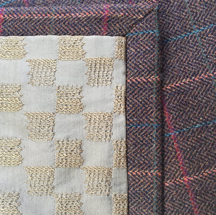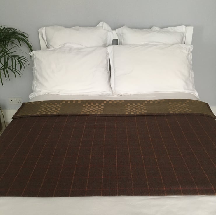 Striking and unique, this throw is individually crafted and entirely hand stitched using specialist techniques. Combining a Shetland tweed and silk, the piece offers a light-weight, dual decor for adding luxury to a sofa, special snug or even your camper van. The multi properties of wool and silk provide both warmth and coolness when needed. This Shetland wool fabric is particularly soft. Entirely practical, it can be used year-round as that extra layer but with that special something that shimmers.