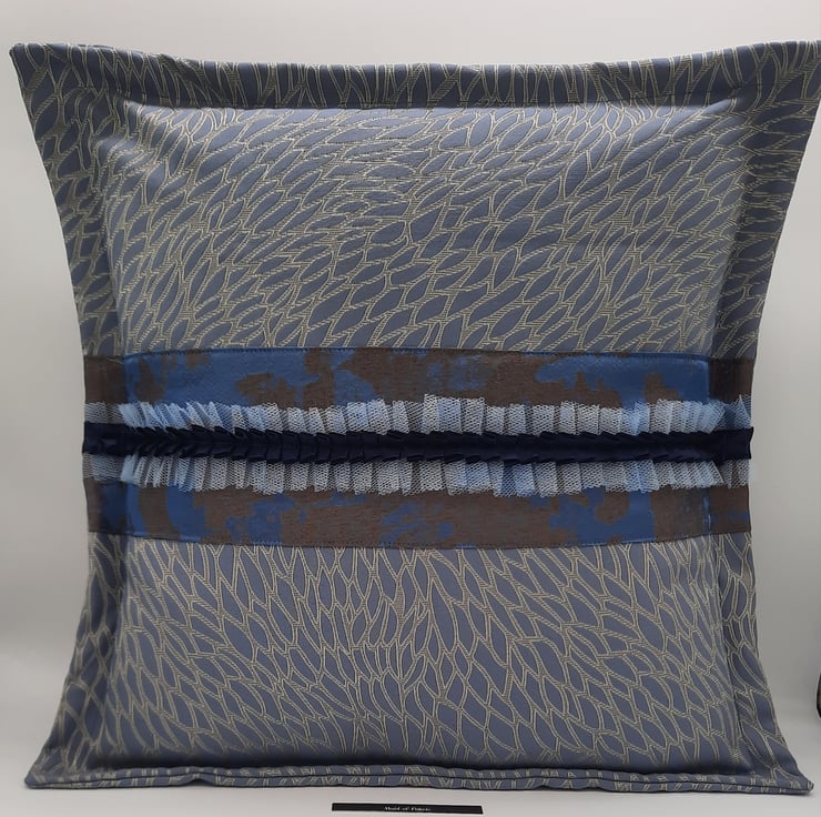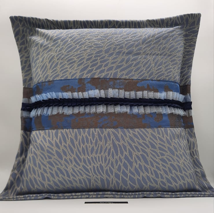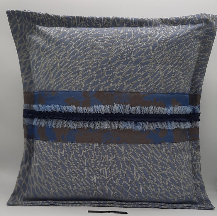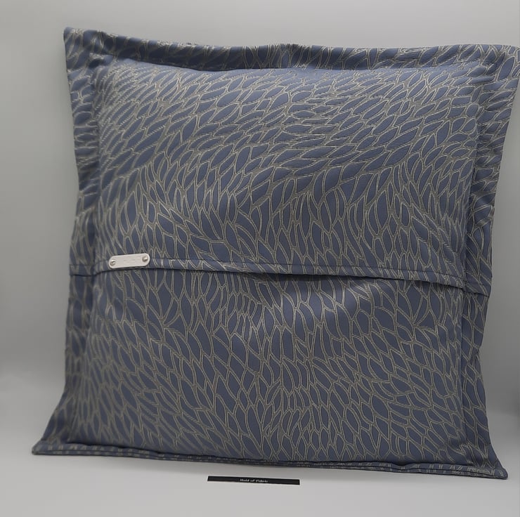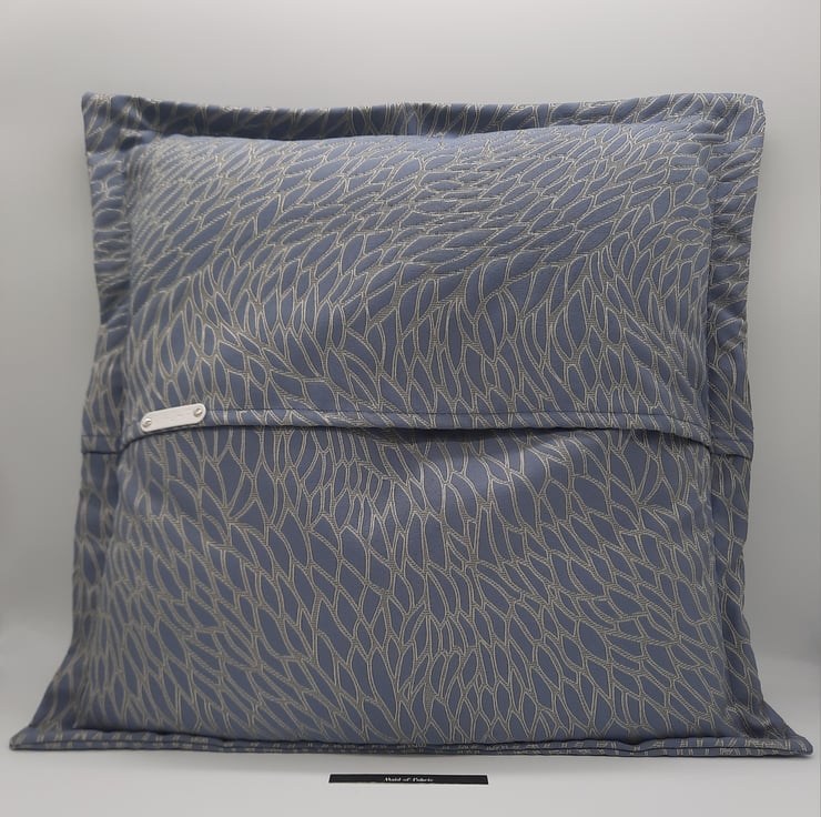 Beautiful blue jacquard fabric cushion cover with a 1" flange and envelope back.