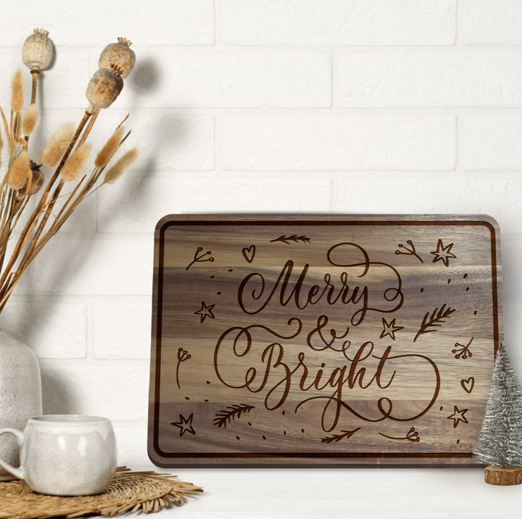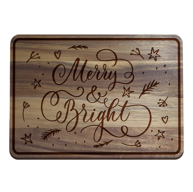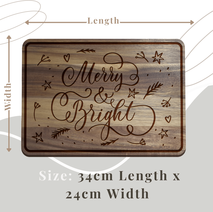 Merry & Bright - Personalised Christmas Chopping Board, Festive Home Decor Gift