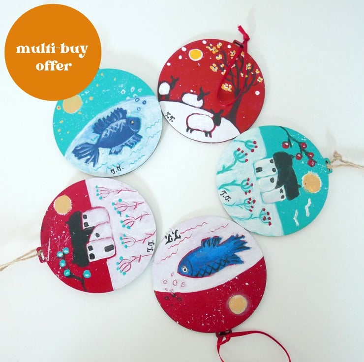 This listing is for a multi-buy offer - buy 4 ornaments priced at £10 each and you get the 5th one free. These would normally be £50, but with this offer, you can get five Christmas decorations at £40. You can keep them for yourself or you can give them as gifts.