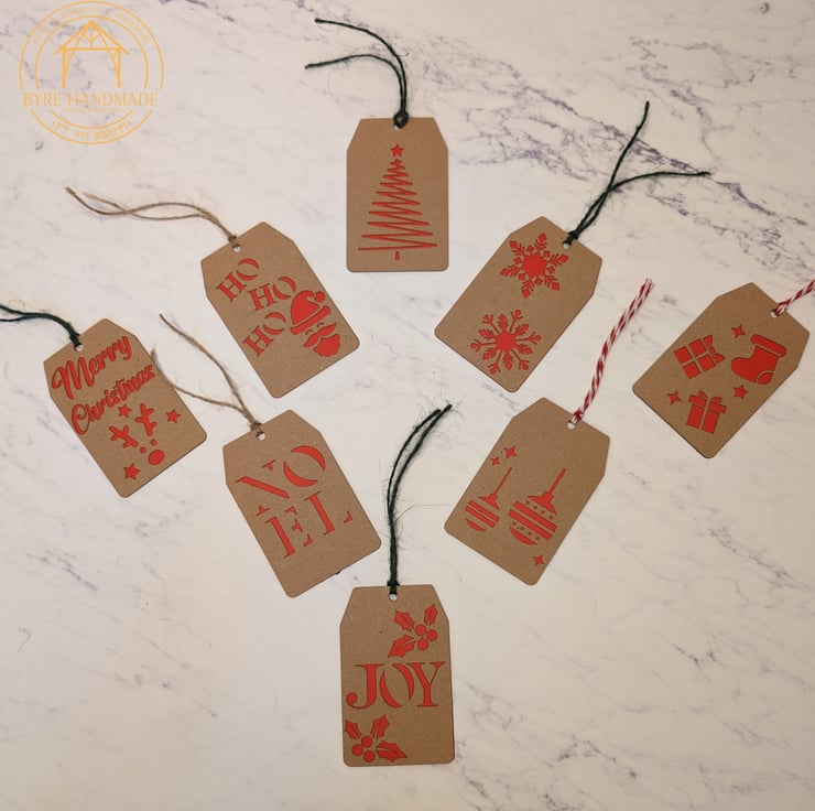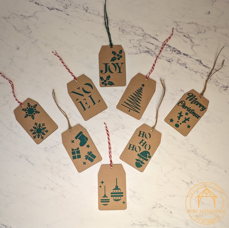 Featuring 8 different designs in 2 colours, made from high-quality brown Kraft card and coloured card and finished with green twine, red and white twine, and natural brown twine.