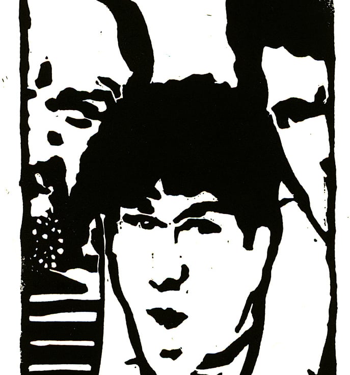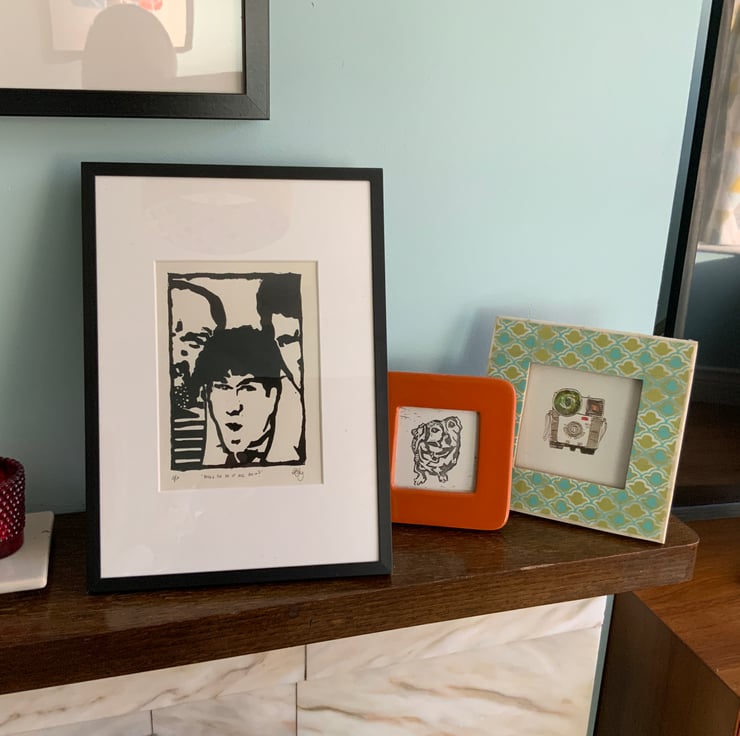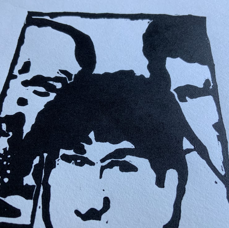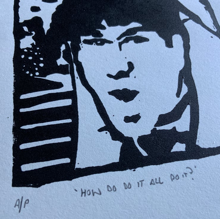 A lino print of the three fellas from the Do It All advert. It is A5 in size, and is printed on ivory-white 80gsm Japanese Simili paper using non-toxic ink.