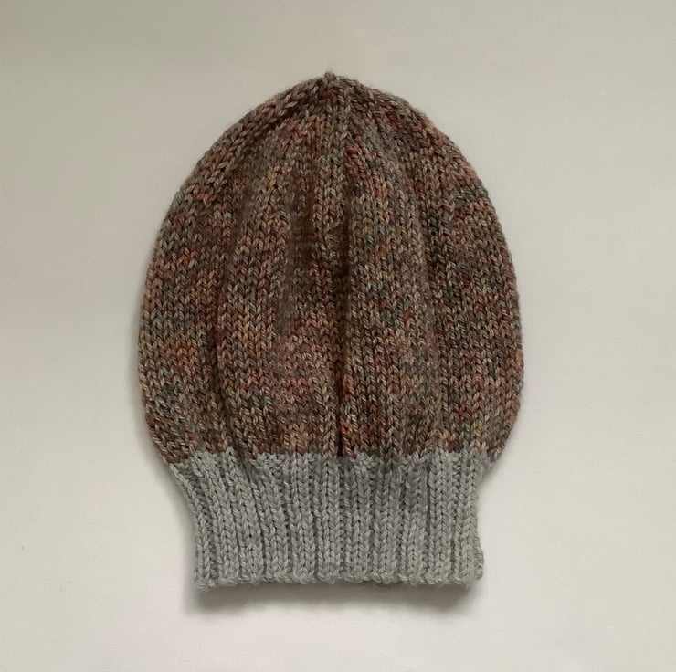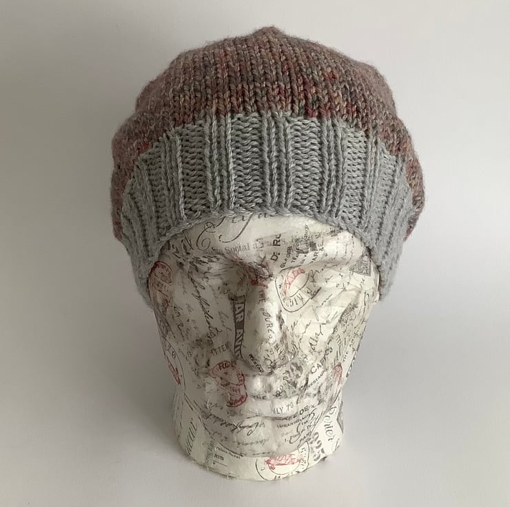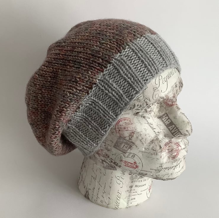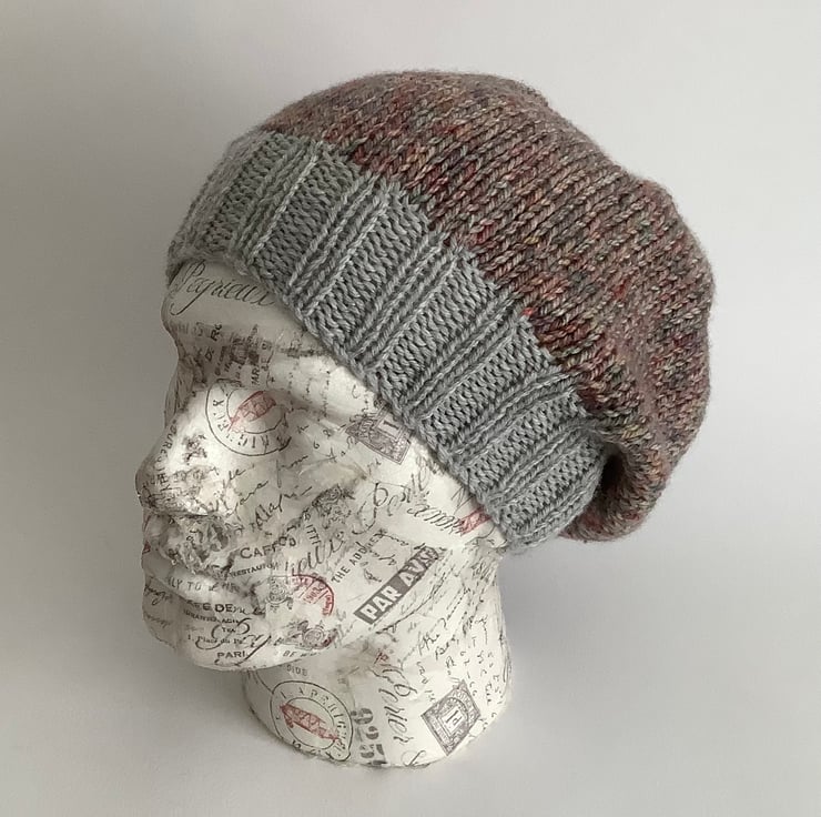 SLOUCH BEANIE hat . ' Riverside' . Soft , wool blend . Grey . Multicoloured.