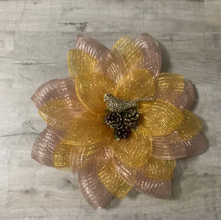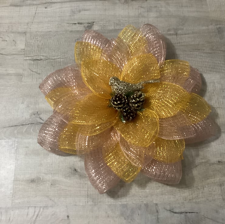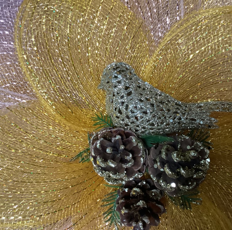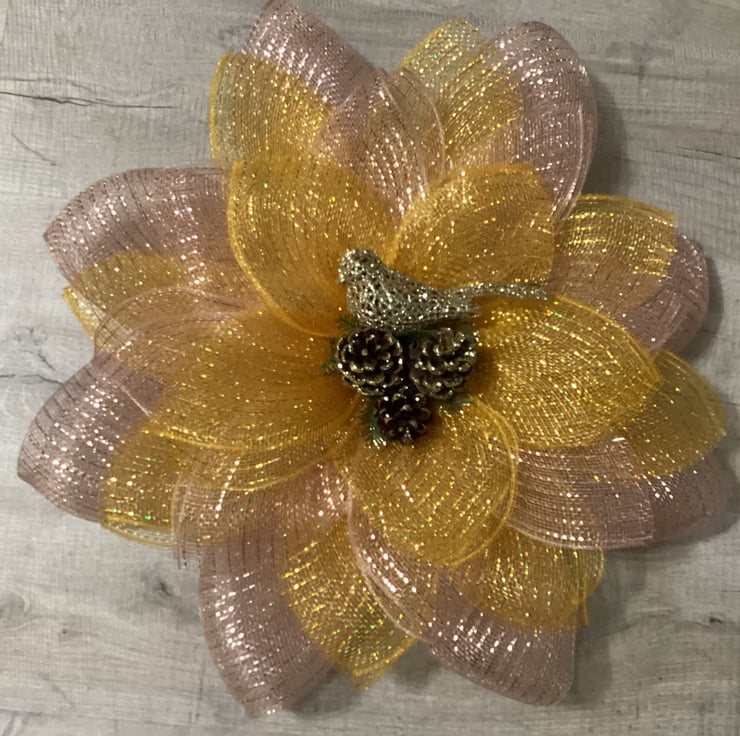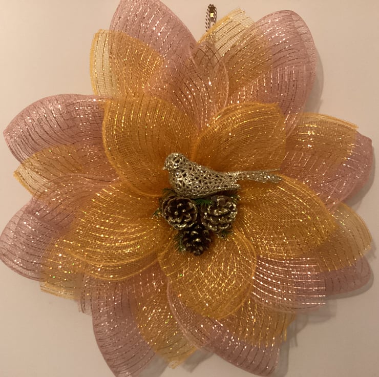 For this project I’ve used sparkly Festive Metallic Deco mesh in gold, rose gold colours. On the back I’ve used thick yellow felt , to protect wall or door.