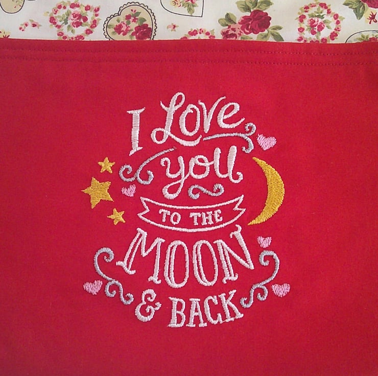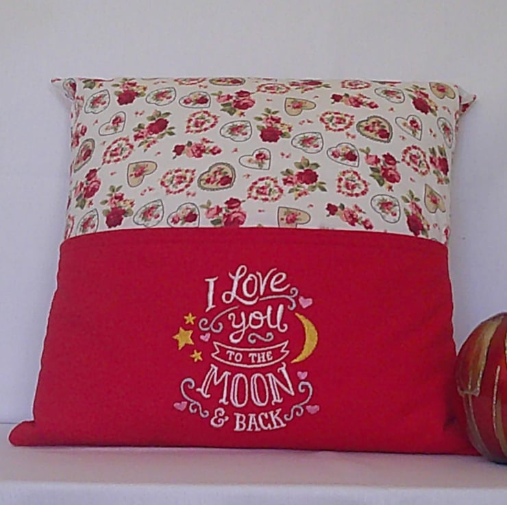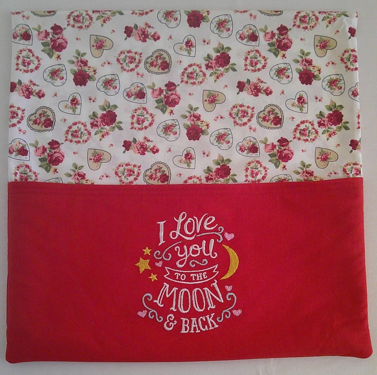 The cushion has a front pocket with an embroidered sentiment on it. This can be used to hold your book, tablet, glasses or anything else you wish to keep in it. The envelope closure is hidden away behind the pocket so there is nothing to stick in you whilst you relax to read your book. This makes your cushion comfy from any side.