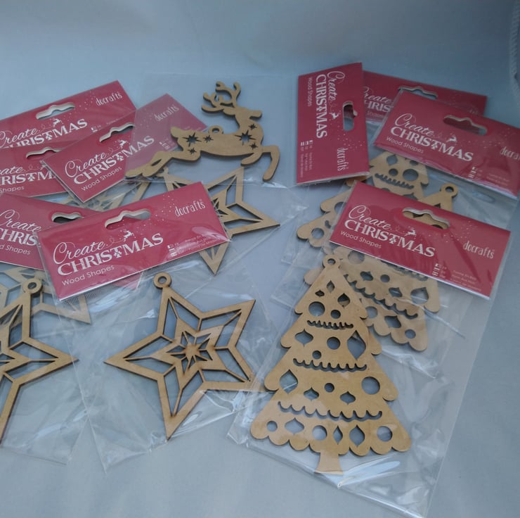 I have these docrafts hanging wooden craft shapes for sale, excess in my craft room. New have never been used still in their packets. Consists of:-