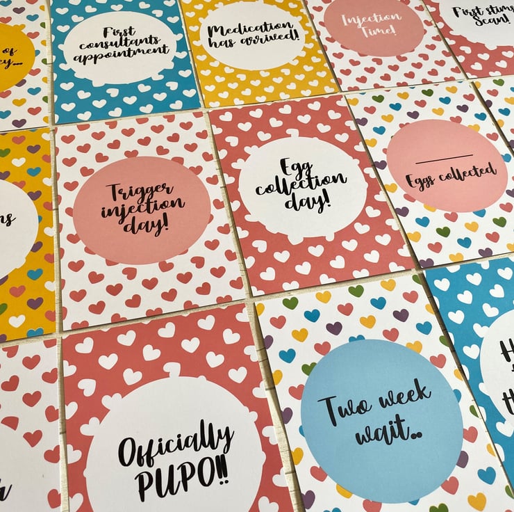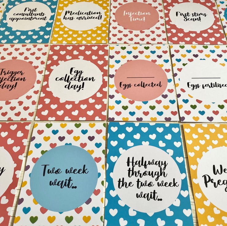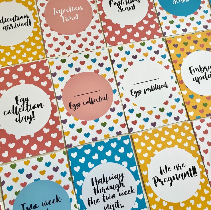 Printed on high-quality 6 x 4” 250gsm premium smooth card, these milestone cards are the perfect size for preserving memories in a scrapbook or fertility journal. They're also convenient to carry in your handbag, ensuring you can discreetly capture special moments during appointments.