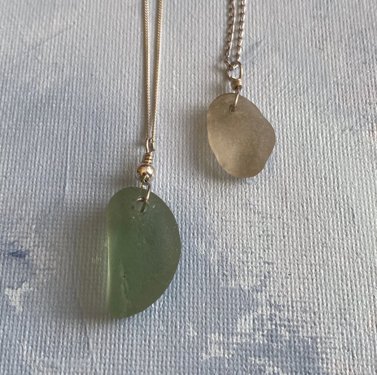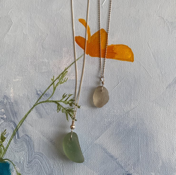 Found on a Cornish beach, drilled and hung on an 18 inch sterling silver chain. Choose from green or white - specify at checkout. Presented in a black velvet pouch.