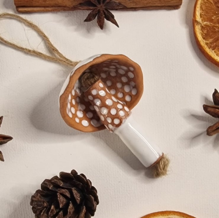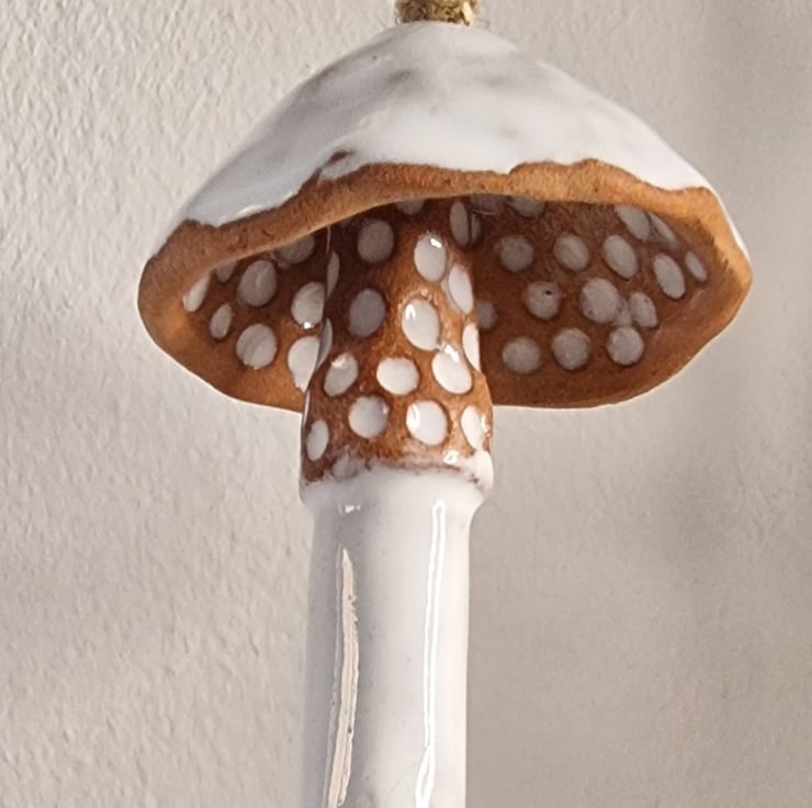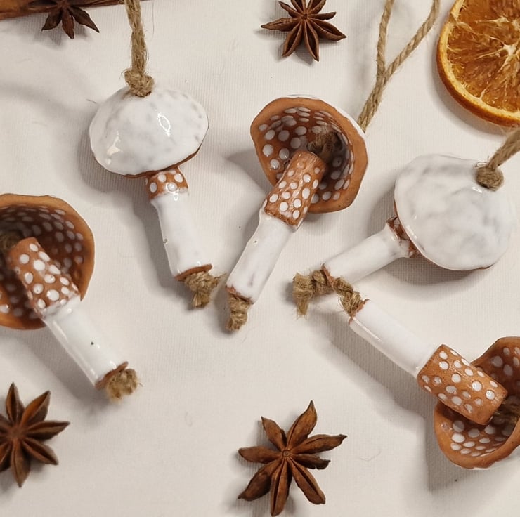These mushrooms have been formed from clay and fired in the kiln, then glazed and fired a second time.