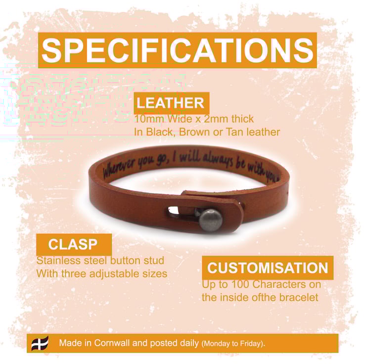To order the Personalised Secret Message Bracelet, simply click the "Choose Options" button above and enter your personalisation details along with the bracelet leather colour that you would like.
