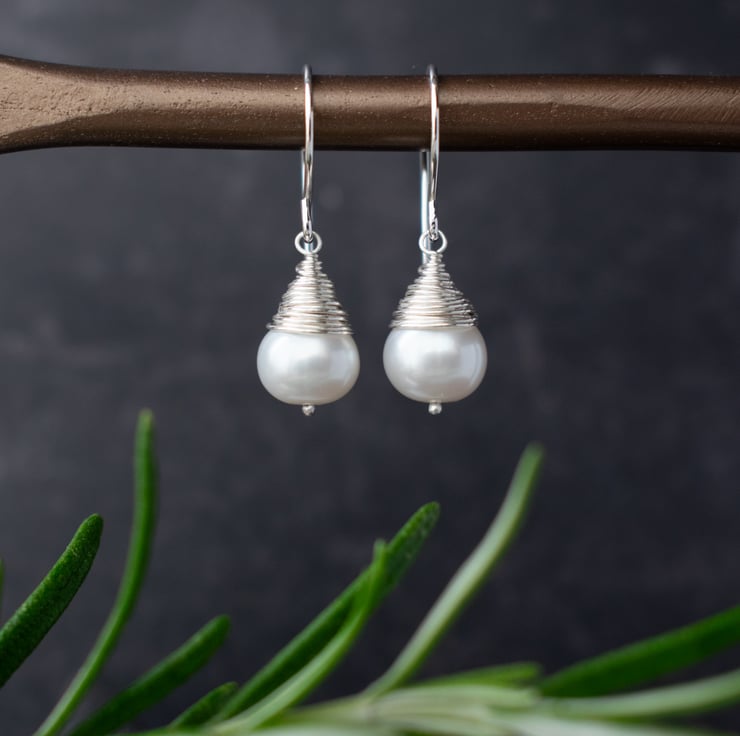 Pearl drop earrings handmade with freshwater pearls. They measure approx. 28mm total drop length.