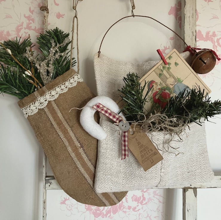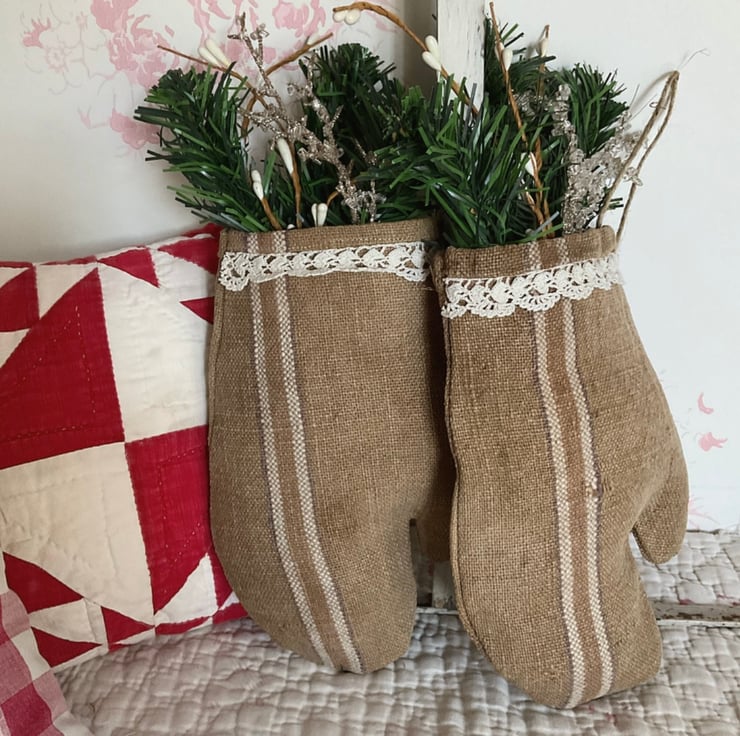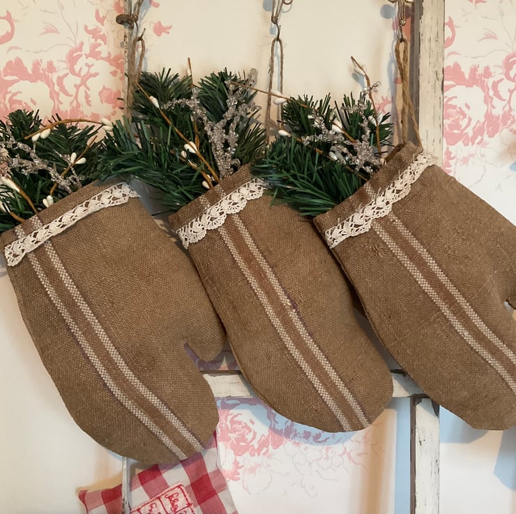 These rustic mittens are made from vintage grain sack, which come with the characteristic marks and darns of age, but add to the primitive style. Please do not purchase if you like your vintage fabrics to be perfect.