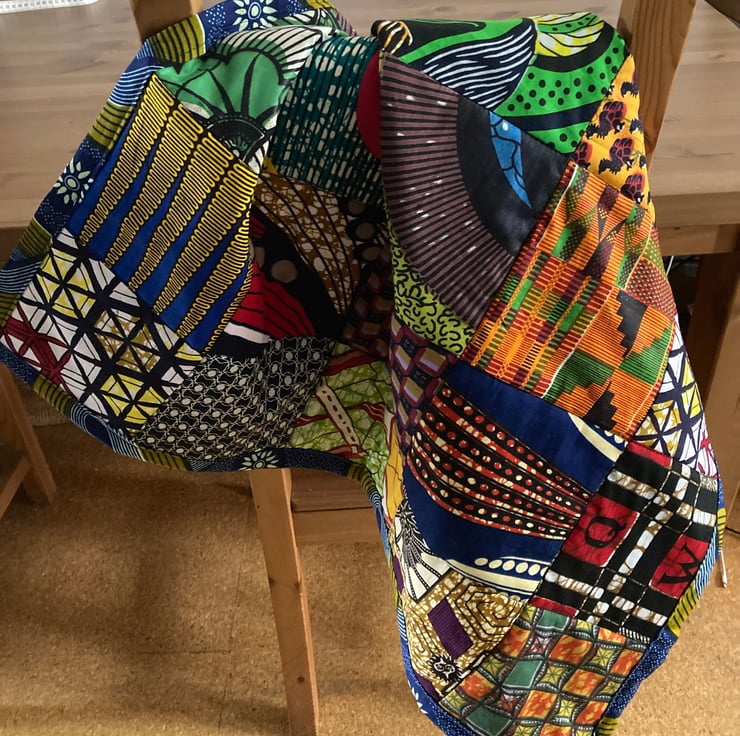 A small, handmade patchwork quilt using fabrics that I have collected across 30 plus years of sewing. This quilt is fully reversible, and is 100% cotton with an 80/20 Hobbs Heirloom batting (80/20 means 80% cotton, 20% polyester.. The batting in this quilt gives it a light, flexible feel. Spot clean or machine wash on 30c..Washing can produce a traditional, antiqued look (slightly crinkled) but a medium iron will bring it back to its original look.