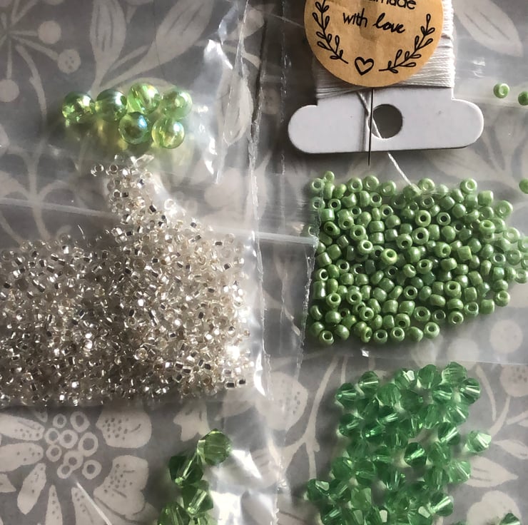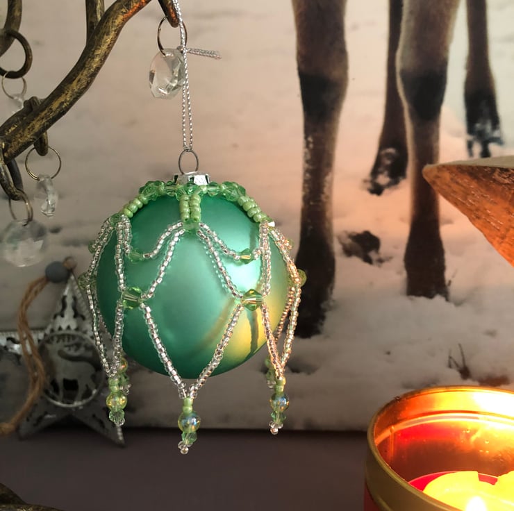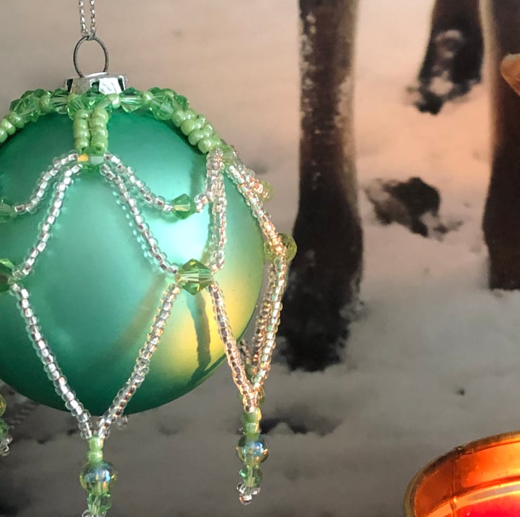 This is a kit for making your own Christmas bauble ornament cover exactly as shown in the photo. The kit includes seed beads matching crystals pearls needle and beading thread