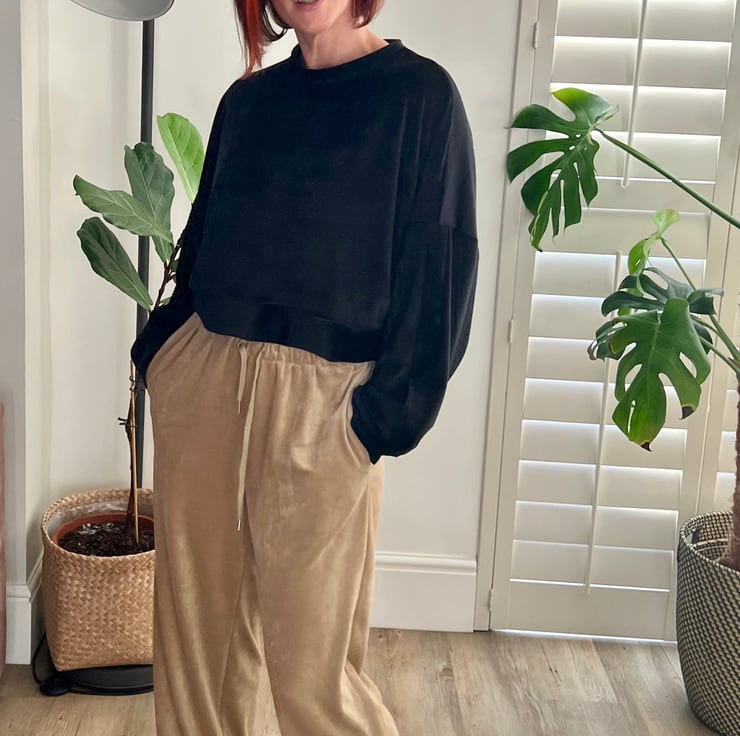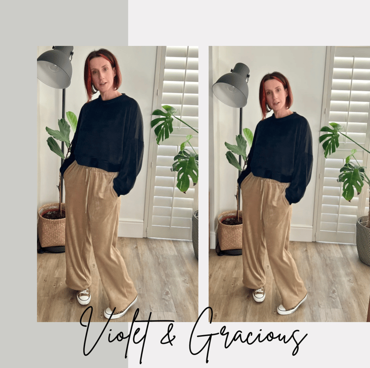 Our super soft Britney Joggers are made from slouchy velour in a beautiful gold shade. These gorgeous joggers features a drawstring and is finished with a Violet logo. Create the perfect coordinated look with our sweaters and add your favourite trainers for a casual Sunday look. Also perfect for lounging in style. Mix and match with our Britney Sweater, available in black.