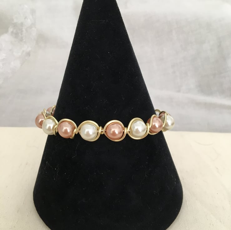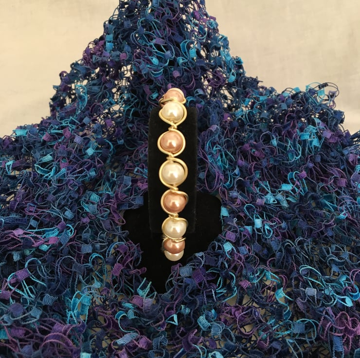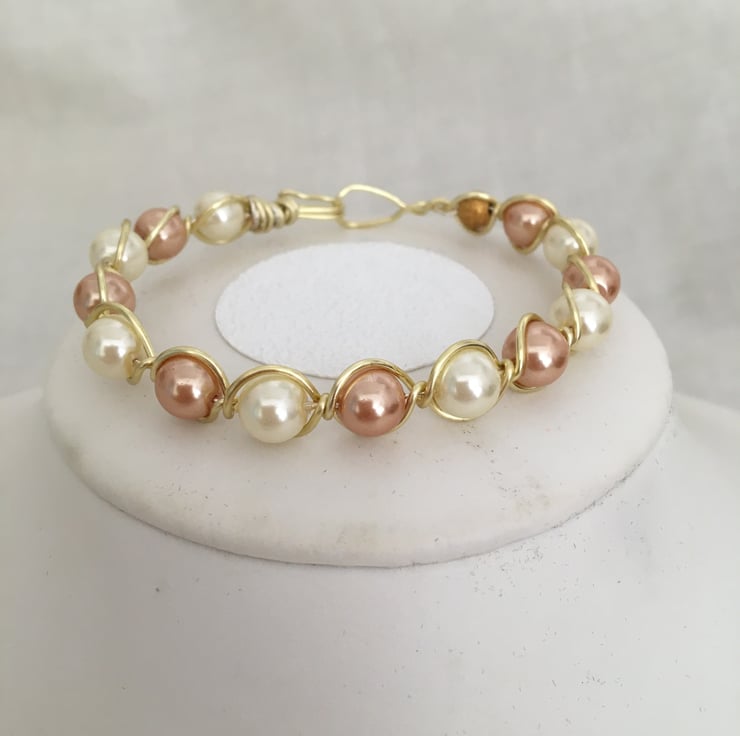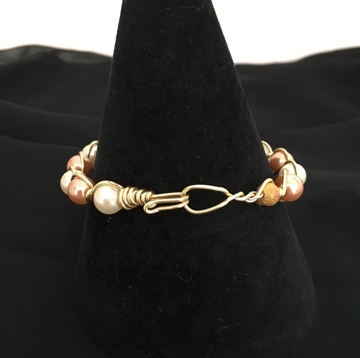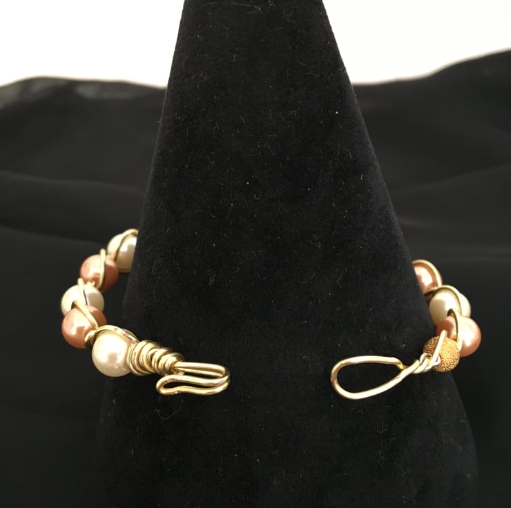 The bangle fits a 7ins wrist comfortably but no larger and fastens with a hook.