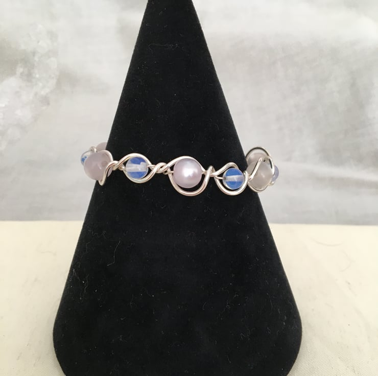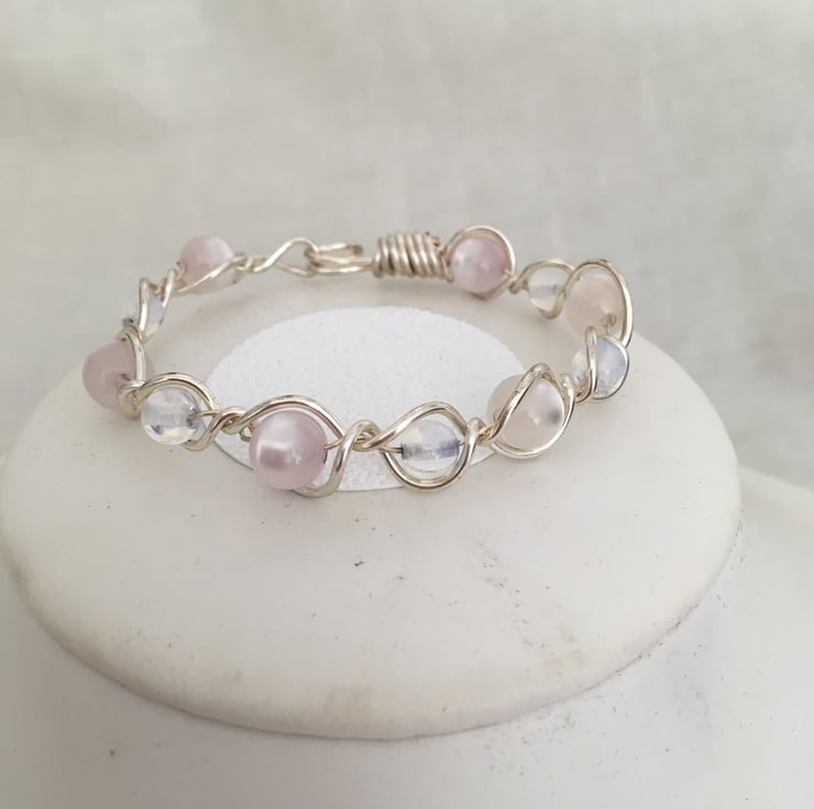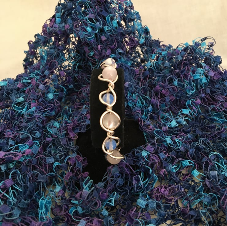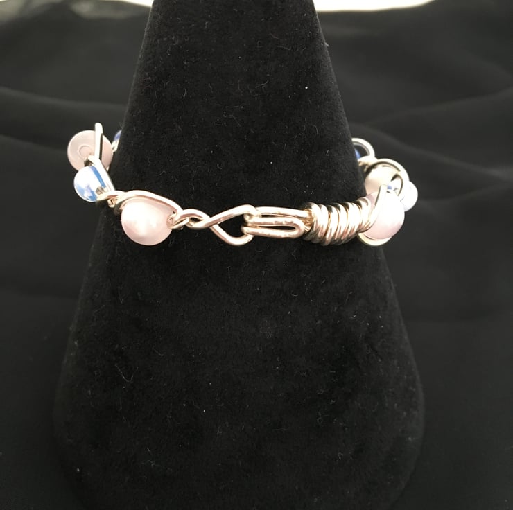 The bangle fits a 6ins wrist comfortably but no larger and fastens with a hook