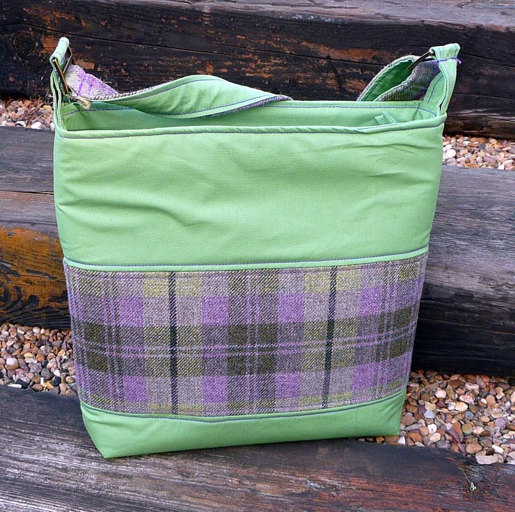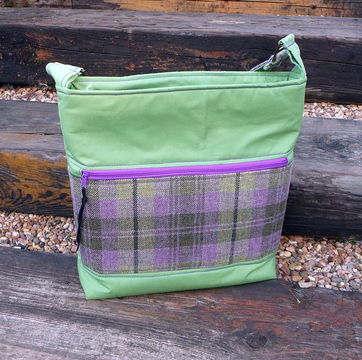 Wax canvas crossbody bag purple green tweed shoulder bag green water repellent wax cotton canvas
