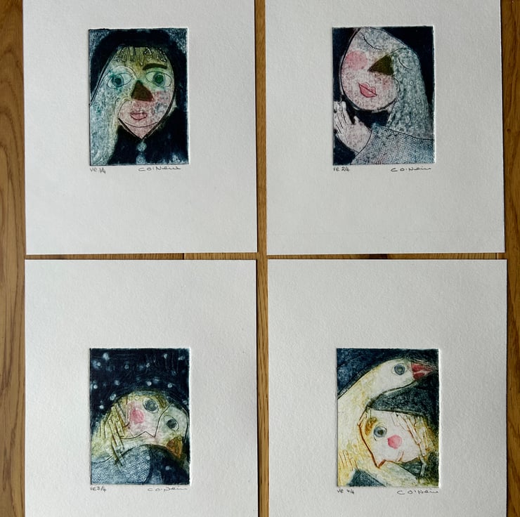 The Winter Goose - Series of 4 Collagraph prints.  Made in Yorkshire