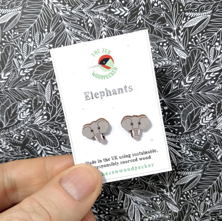 These little elephant earrings are designed by Carolyn and made in the UK using birch plywood from sustainable, responsibly managed woodlands.