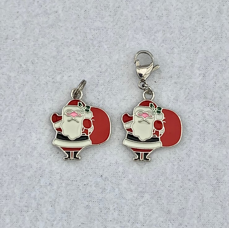 Alloy enamel Santa / Father Christmas pendant measuring 28 x 23 x 2mm fitted with either a stainless steel ring or stainless steel clasp and available as a single charm or pair.