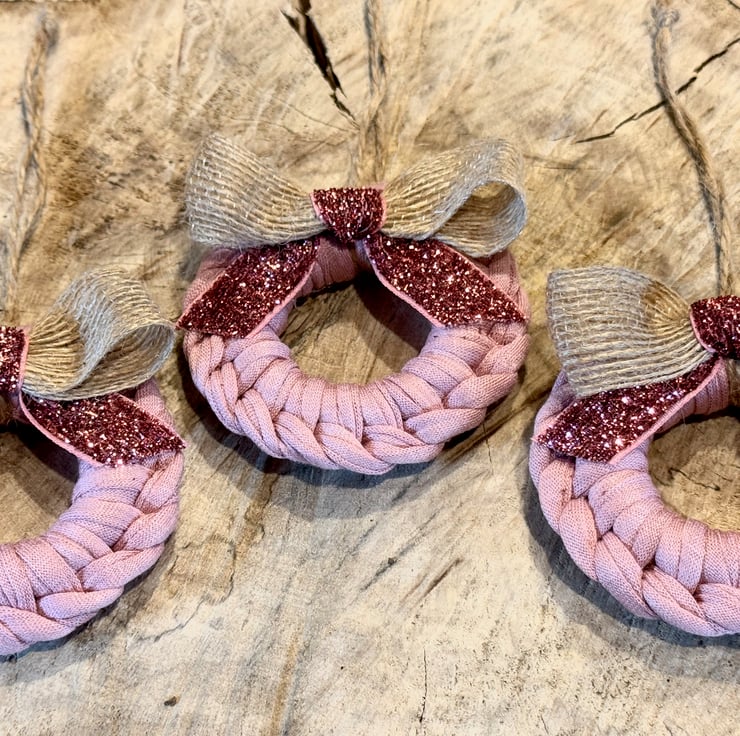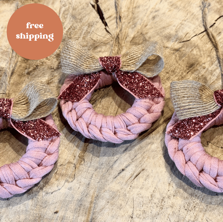This little set of 3 handmade macrame t-shirt and hessian tree decorations are a delightful addition to your holiday festivities! This unique creation combines the up cycled t-shirt material with the rustic charm of hessian, making it a perfect accent for your seasonal decor. Each piece is lovingly crafted and radiates the cozy spirit of Christmas. I'm so pleased to share these special ornaments with you, and hope they add a touch of handmade warmth to your holiday celebrations.