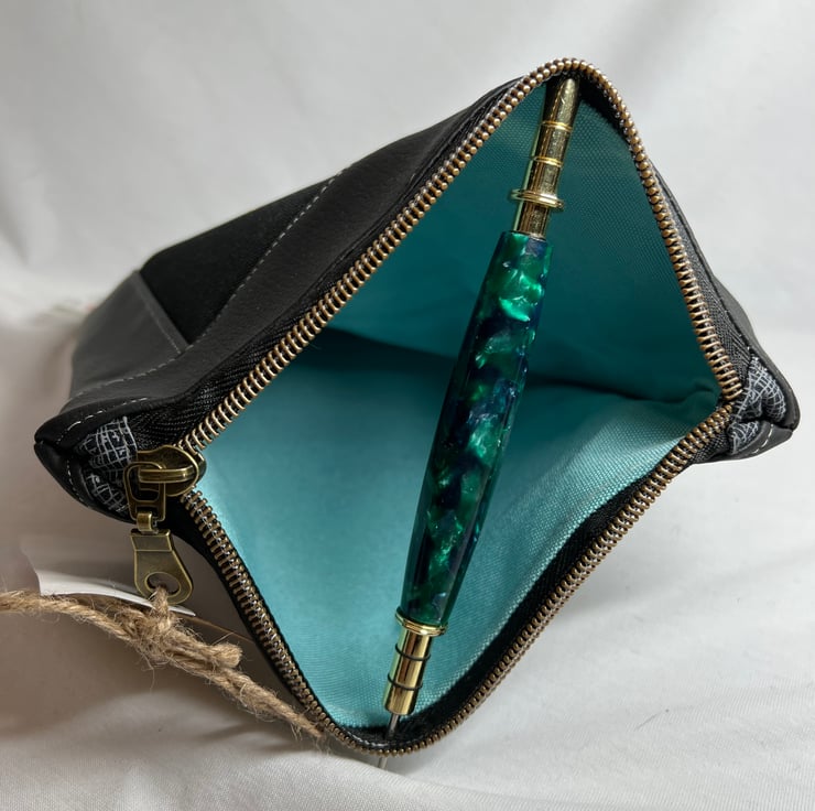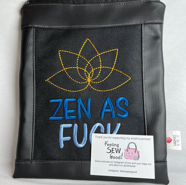 Large embroidered zipper bag, made with waterproof canvas and faux leather.