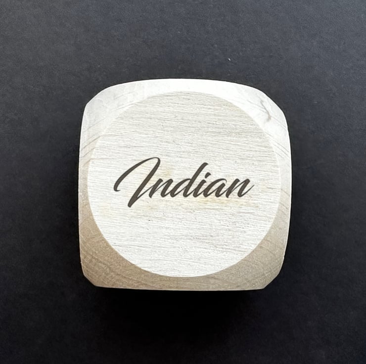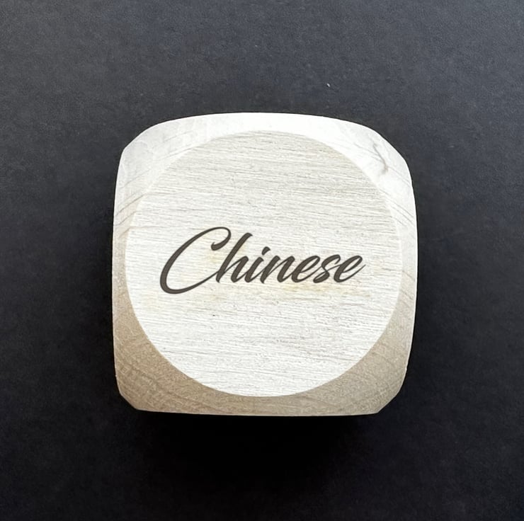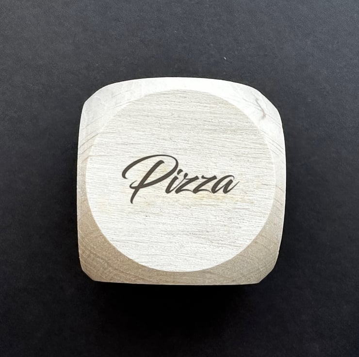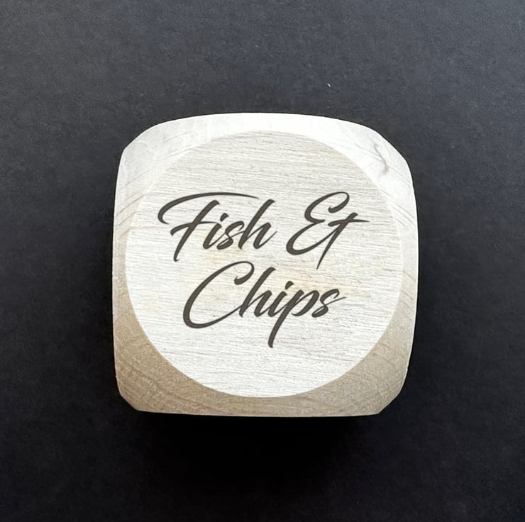 A beautiful, personalised, laser engraved wooden dice with different take away choices on each face to help you make those difficult... or not so difficult decisions.