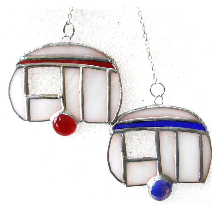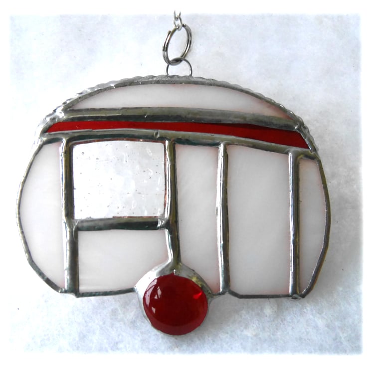 Caravan Suncatcher Stained Glass Mini Red Camping