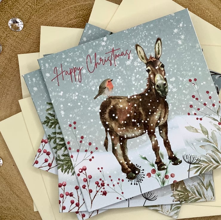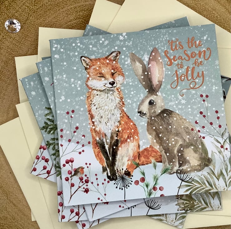 Each of these beautiful hand illustrated Christmas cards measure 10cm square and come with a contrasting cream envelope