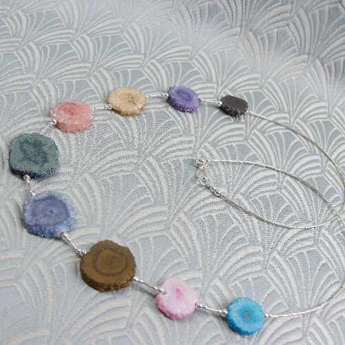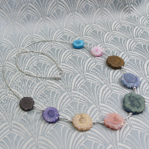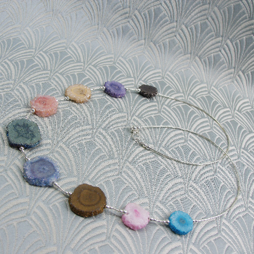 This is a really pretty unique handmade druzy quartz necklace that has been created from graduating slices of the semi-precious stone druzy quartz.