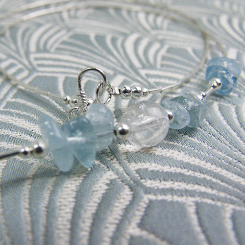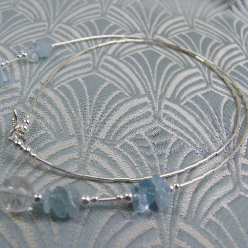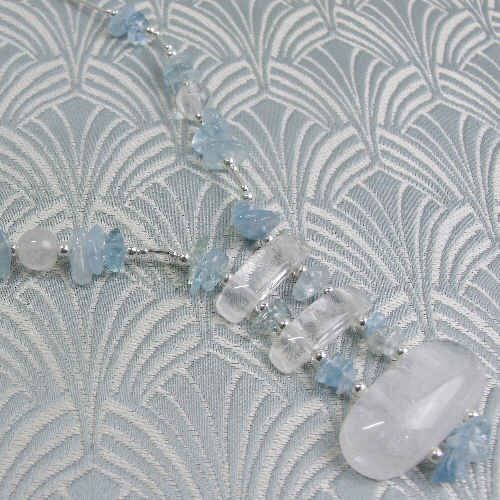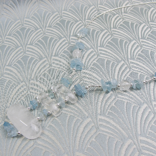 This beautiful sterling silver and semi-precious quartz necklace has been handmade from sterling silver and the semi-precious stones crystal quartz and aquamarine.