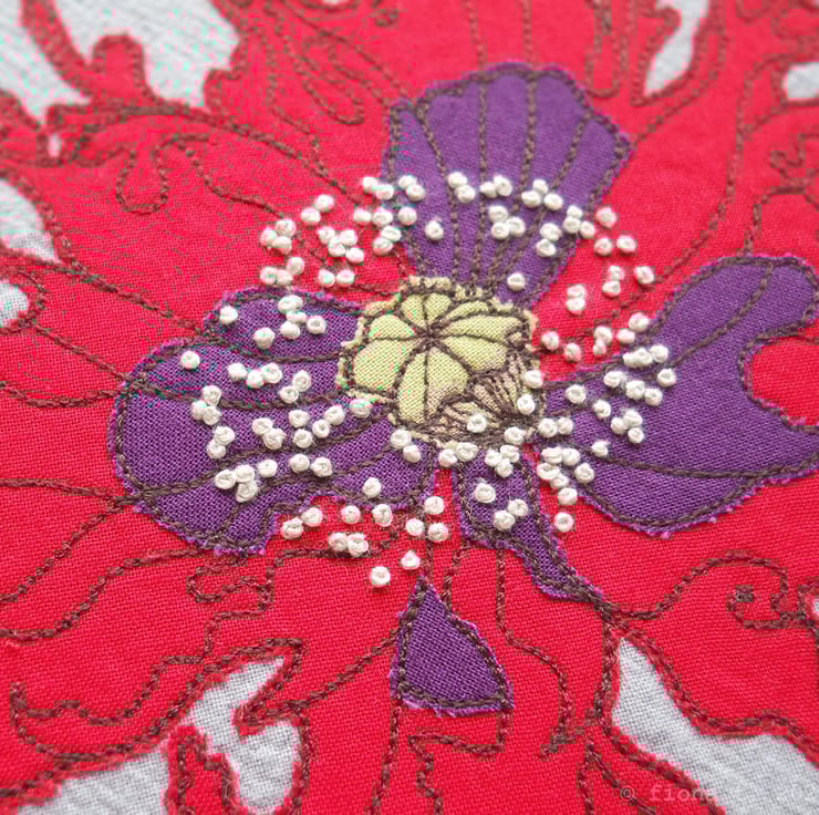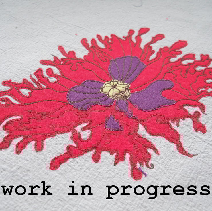 i'm a traditional nerd: there's no computer wizardry here - this piece was sewn entirely on a domestic sewing machine from my hand drawn original sketch, from a poppy in my garden.