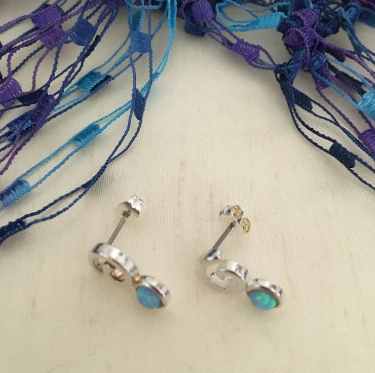 The beautiful sky blue faux opals daintily reflect the light with green sparkles as the studs move.