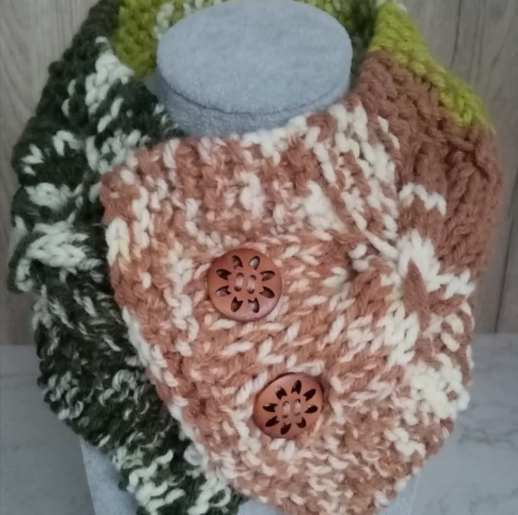 Merino Fair Isle style buttoned cable knit neck warmers in an array of autumn/winter colours.