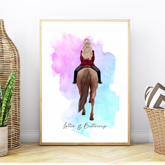 Who wouldn't be delighted to receive a bespoke print of themselves and their horse. Lots of design elements to choose from, if you cannot see what you are looking for, just ask?
