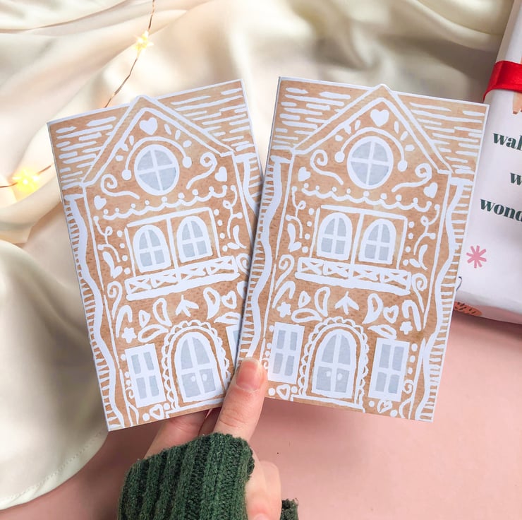 Send festive cheer this year with a Gingerbread House Christmas Card! Originally hand-painted with watercolours, this card has been cut by hand to give its unique finish. Printed on recycled card, this card is A6 size & comes with a kraft envelope - perfect for spreading Christmas joy.