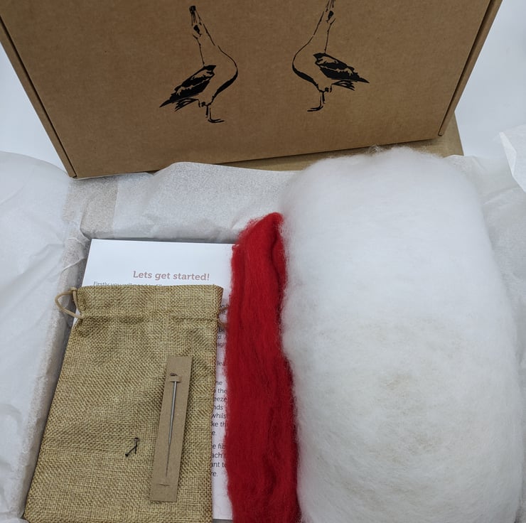 Each kit comes with core wool, Corriedale top, needles, instructions, an eco felting pad and glass eyes.