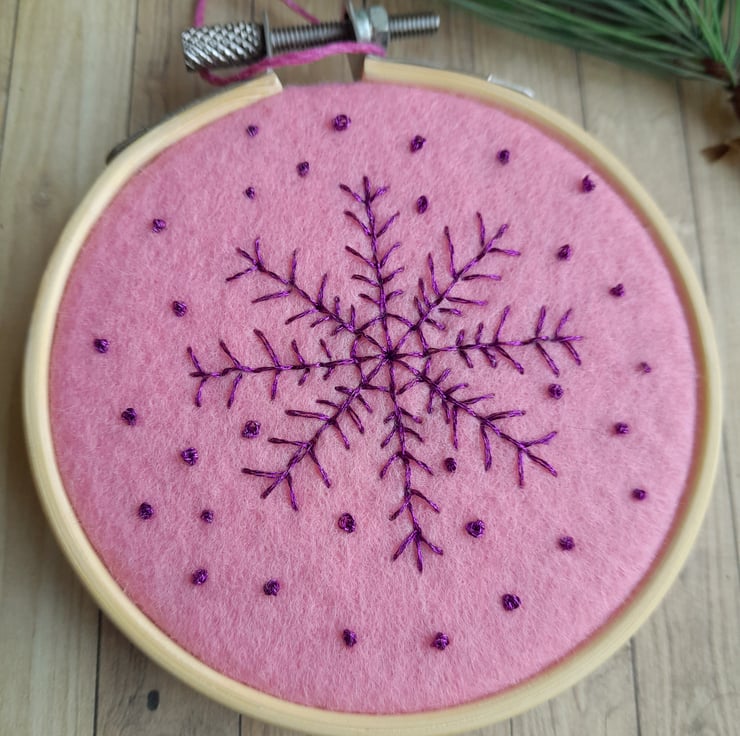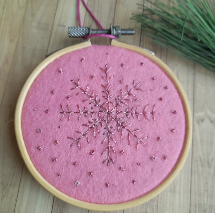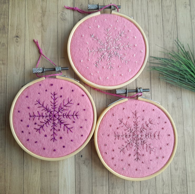 Bring some shimmer and sparkle to your winter decorations with these three lovely little hand embroidered snowflake decorations.
