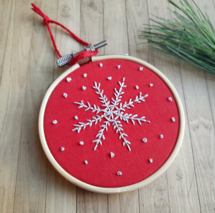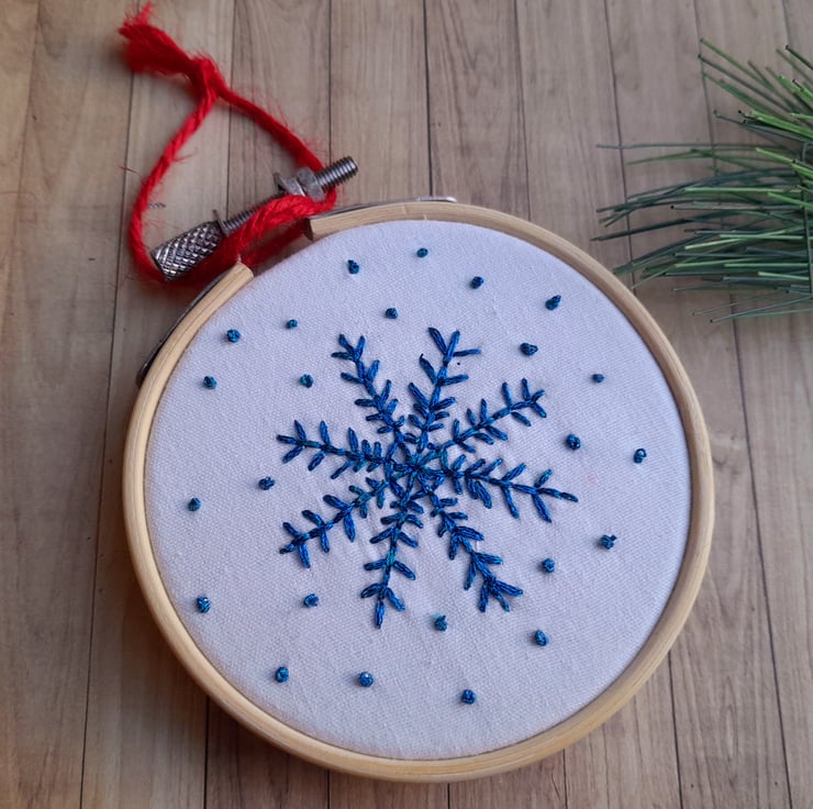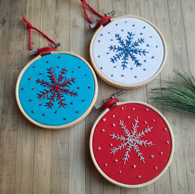 Bring some shimmer and sparkle to your winter decorations with these lovely little hand embroidered snowflake decorations.