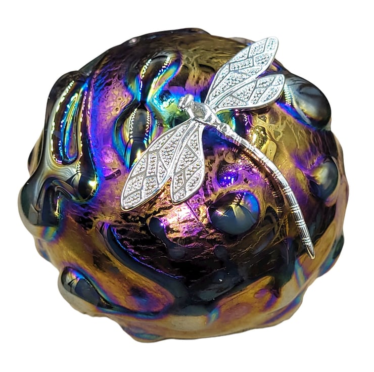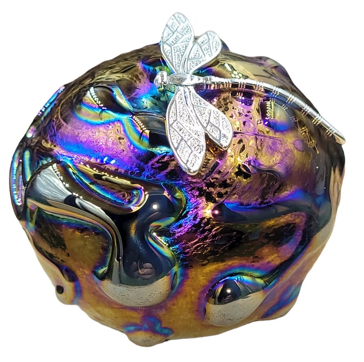finished in a rainbow iridescent glaze which gives a lustrous and pearly effect