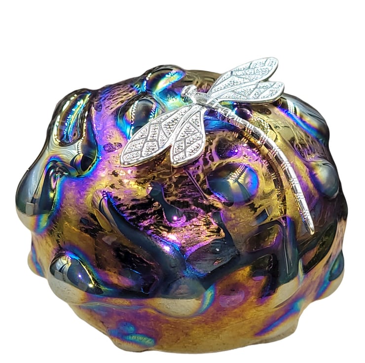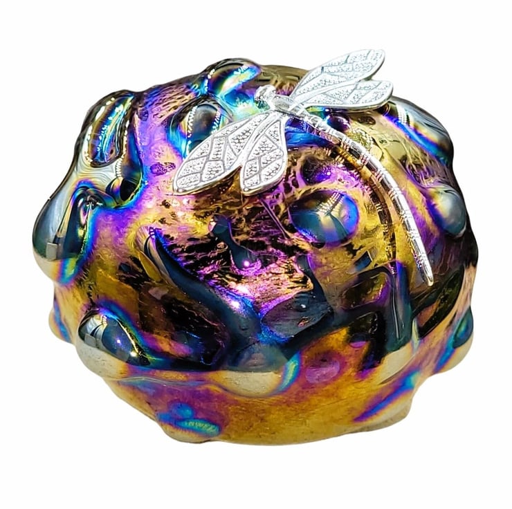 Handmade iridescent art glass pebble paperweight
