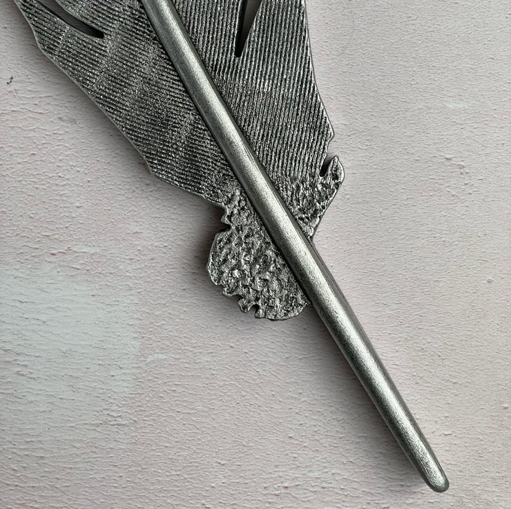 If you would like the feather to appear on a tilt, simply place a small nail at the position lower down the feather for it to rest onto which will create the angle.