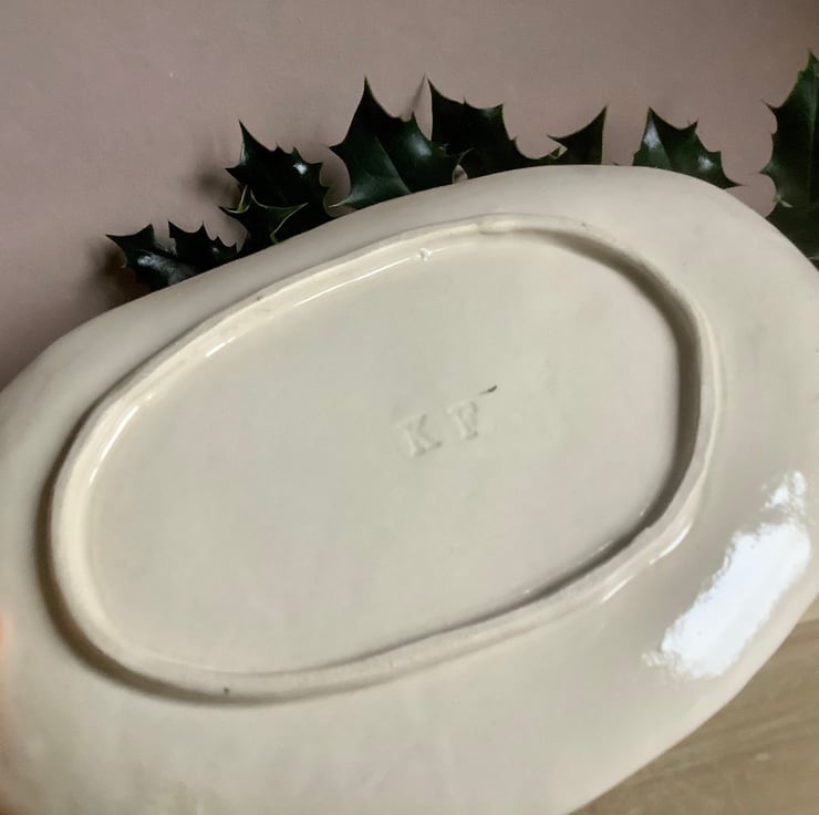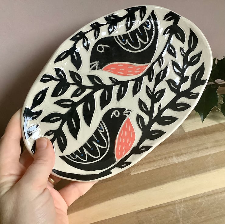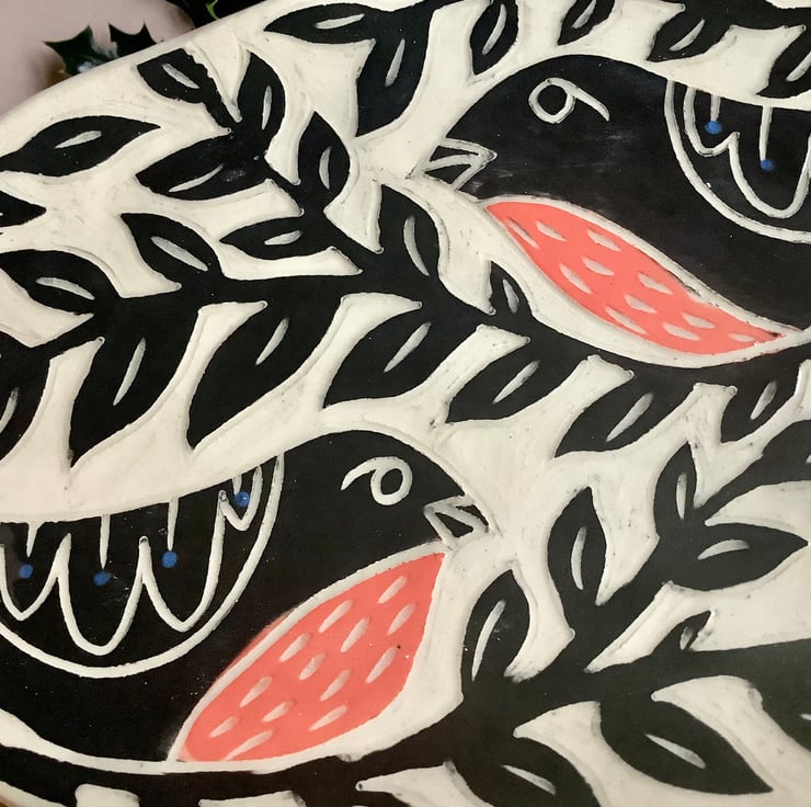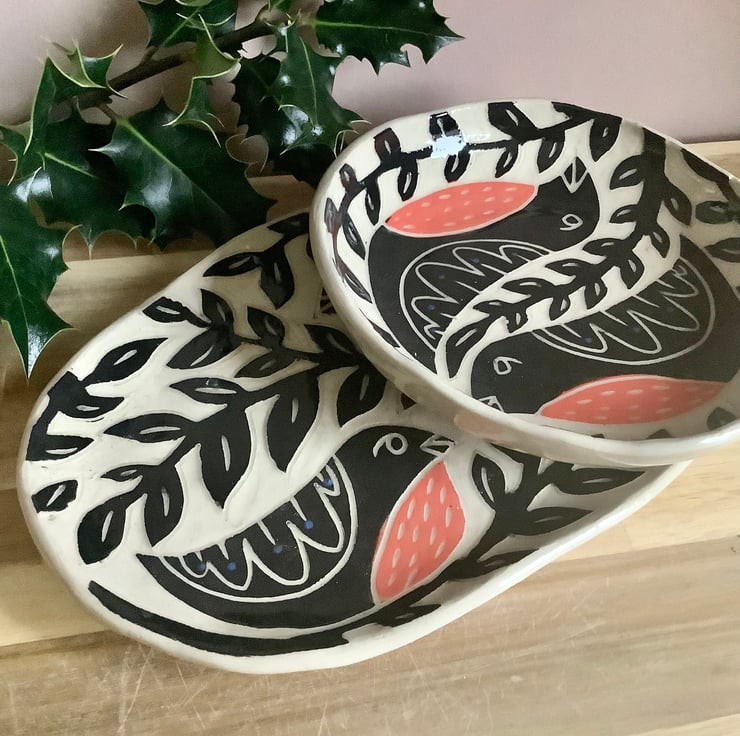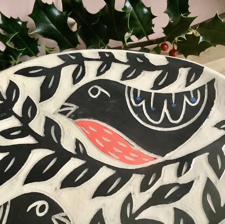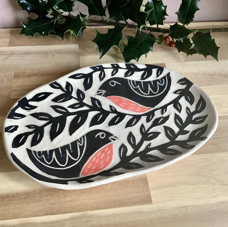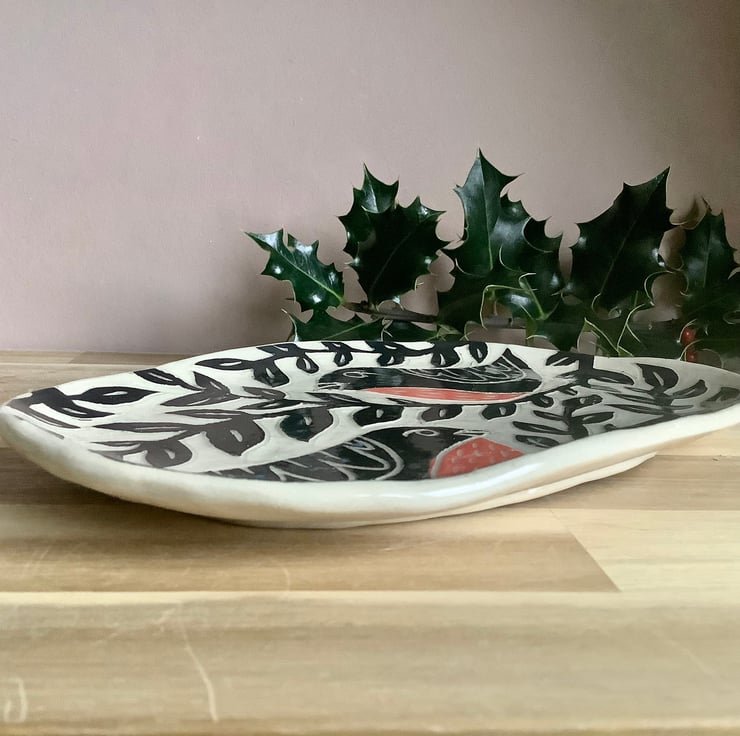 Handmade Robin and leaf plate, this gorgeous side plate would be great as part of your Christmas buffet table or for pilling high with Christmas snacks and treats.