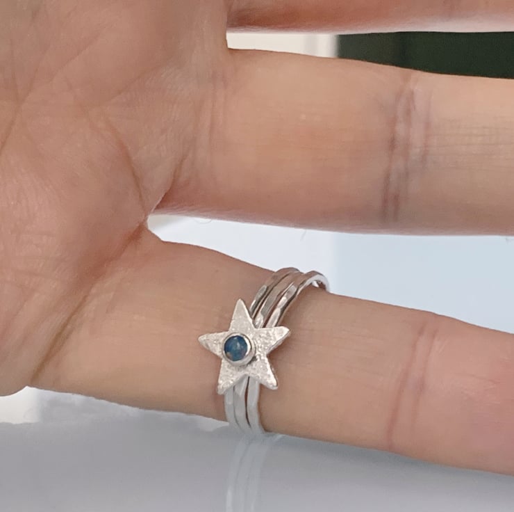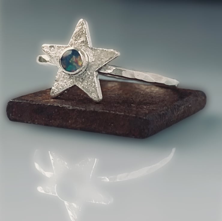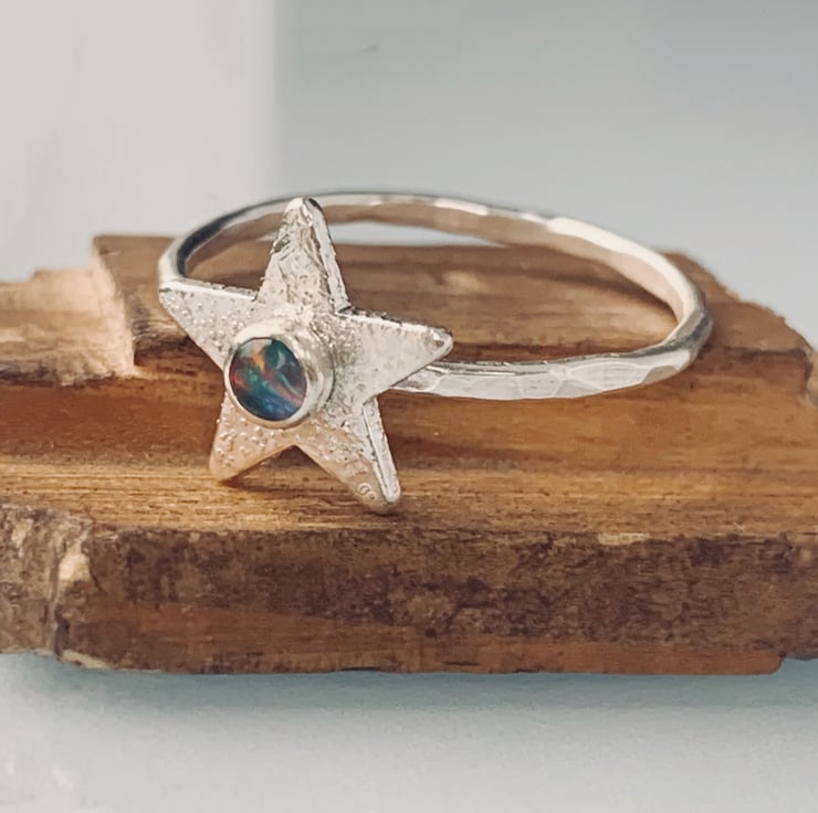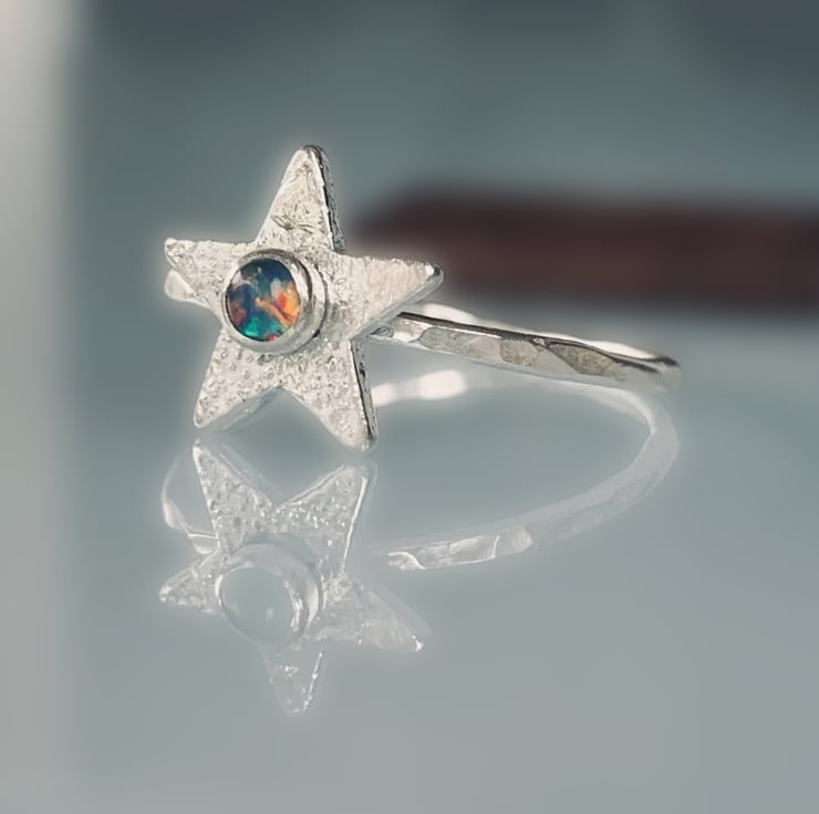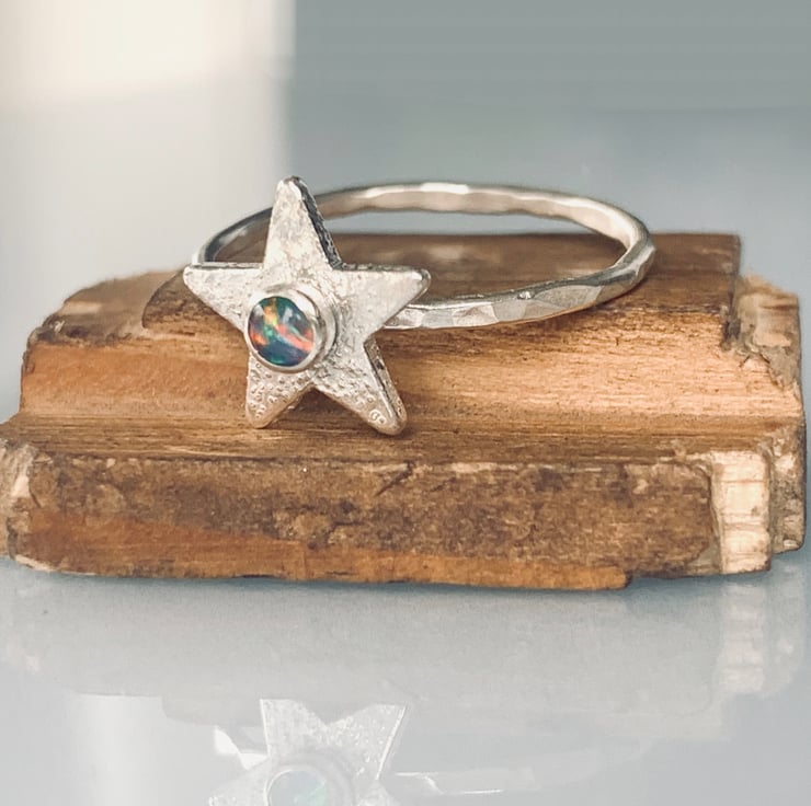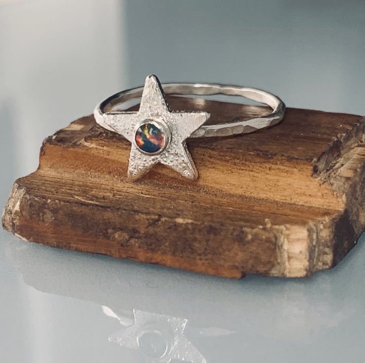 PUNK STAR HANDMADE Recycled Sterling Silver Star Opal Skinny rings