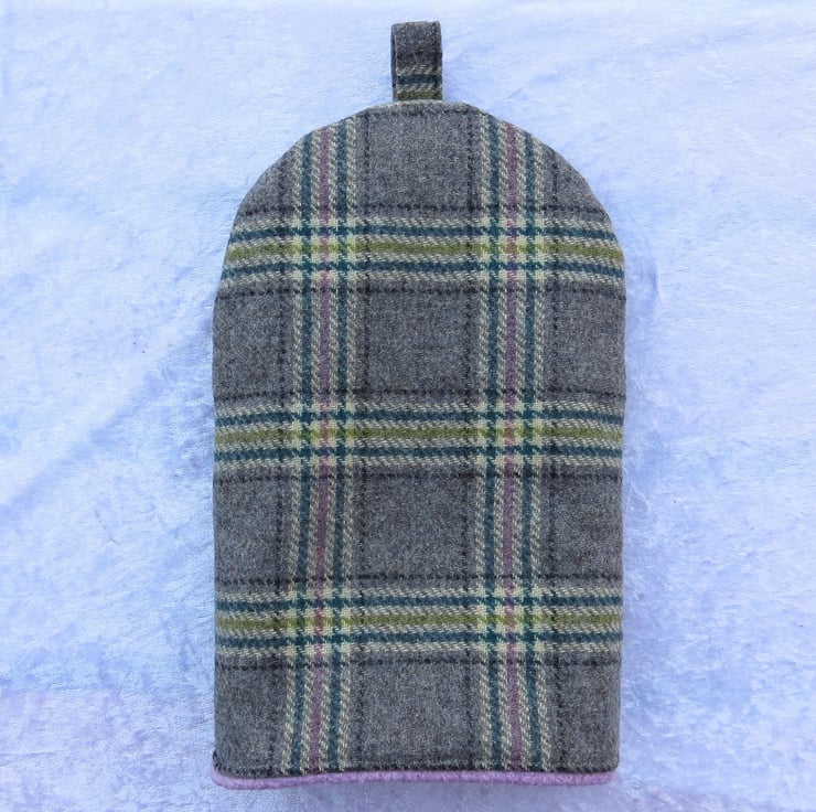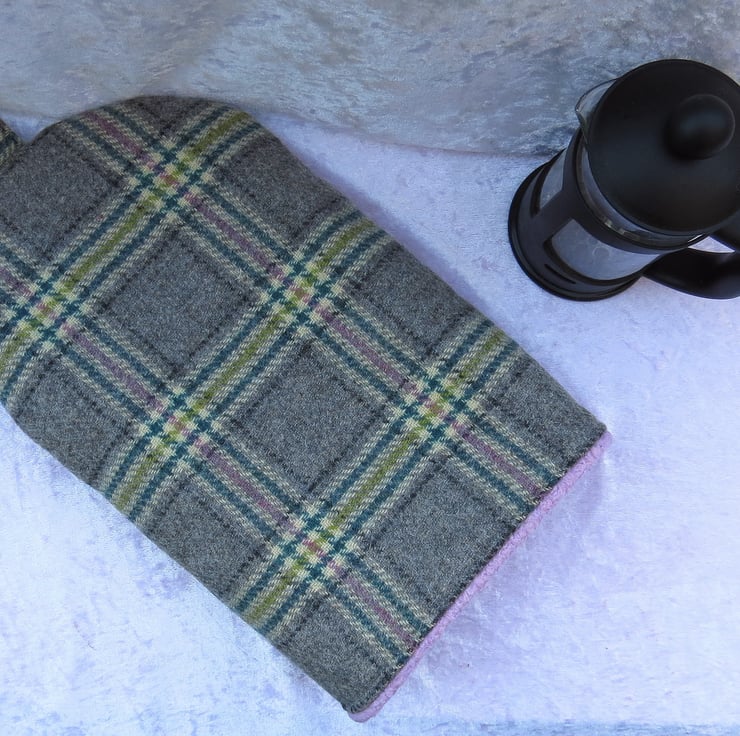 This cafetiere is made from a soft wool, with a check design.