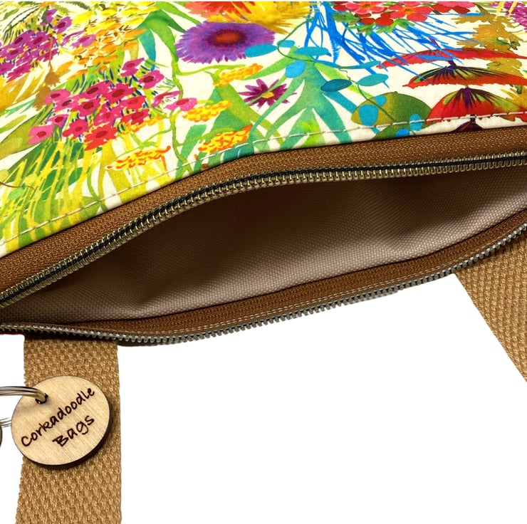 This gorgeous bag is made from a beautiful Liberty Tana Lawn fabric called 'Tresco'. The fabric is absolutely stunning, not only pretty to look at but it feels so soft and silky. Add some elegance and colour into your life with this amazing bag. Ideal as a gift or to treat yourself.
