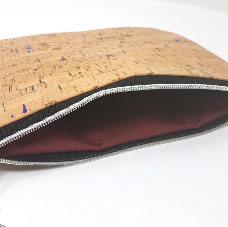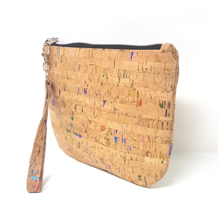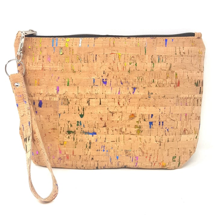 Stunning cork leather vegan wristlet clutch bag in natural cork with a beautiful rainbow fleck. Cork is beautifully soft and supple yet makes a very sturdy quality bag. Treat yourself or ideal as a gift!!